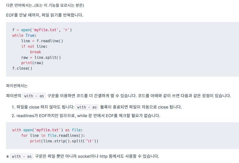 EOF (end of file) 을 체크할 필요가 없고 close할 필요도 없다.