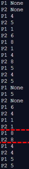 print로 p1과 p2가 어떻게 움직이는 지 찍어봤다.