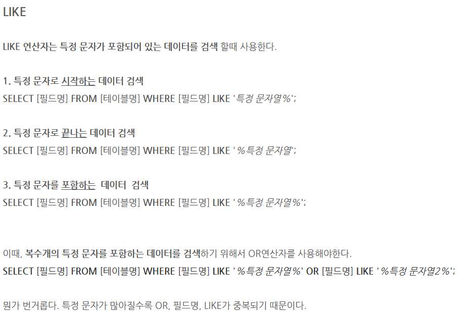 DUPLICATE (DISTINCT 또는 GROUPBY로 사용 가능)