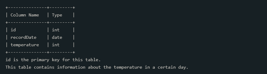 {"headers": ["Id", "RecordDate", "Temperature", "Id", "RecordDate", "Temperature"],
