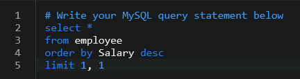 SELECT DISTINCT Salary -- 장점: 서브쿼리를 안써도됨, IF문or CASE문 작성 필요없음. Aggregation function 작성 필요없어짐.