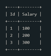 # {"headers": ["Id", "Salary"], "values": [[3, 300]]}