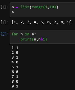 for 문에서 & 연산으로 홀수 여부를 판단한다.