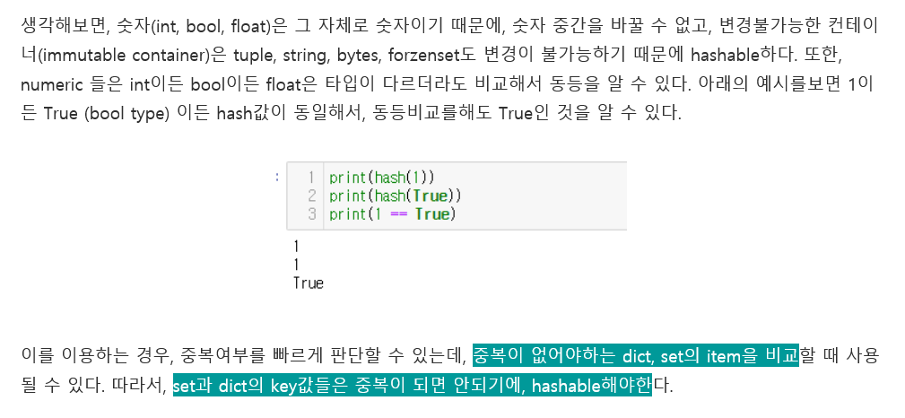 요약: non-duplicate를 요구하는 python object들은 hashable하다.