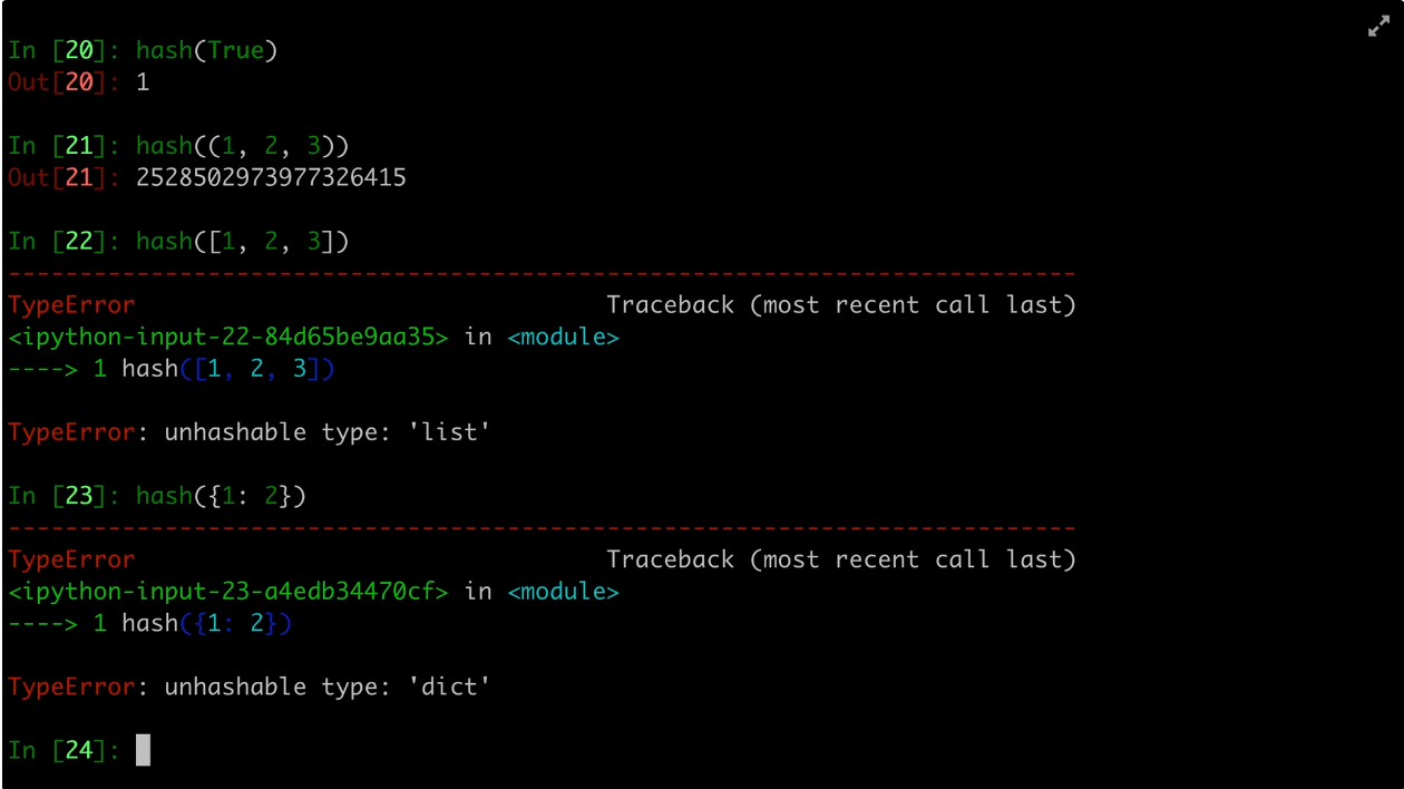 문제를 마저 풀기 전에 unhashable과 hashable의 차이점을 알아보자.